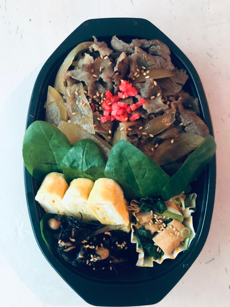 牛丼と小松菜厚揚げ煮びたし弁当🐄
