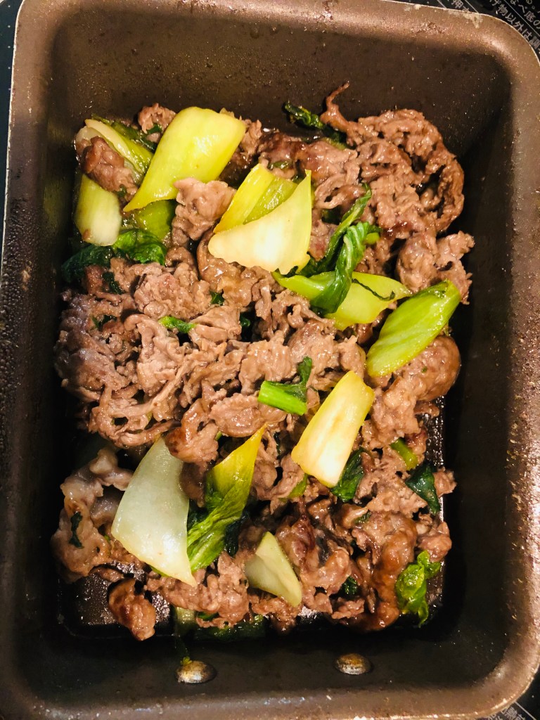 牛肉小間きれと青梗菜