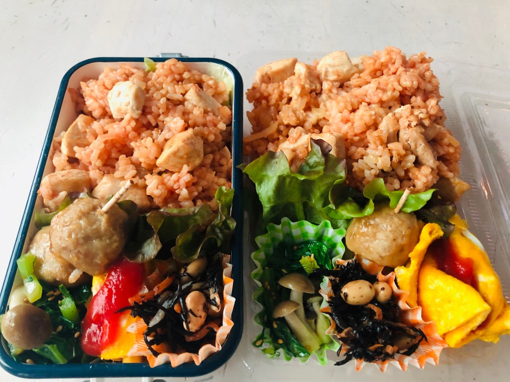 チキンケチャップライスと小松菜胡麻和え🍗