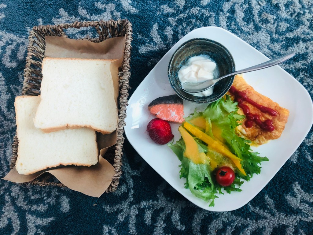 寝坊の子供たちのブランチ 思いっきりCHEESE入りオムレスと 豆乳ヨーグルト🍞
