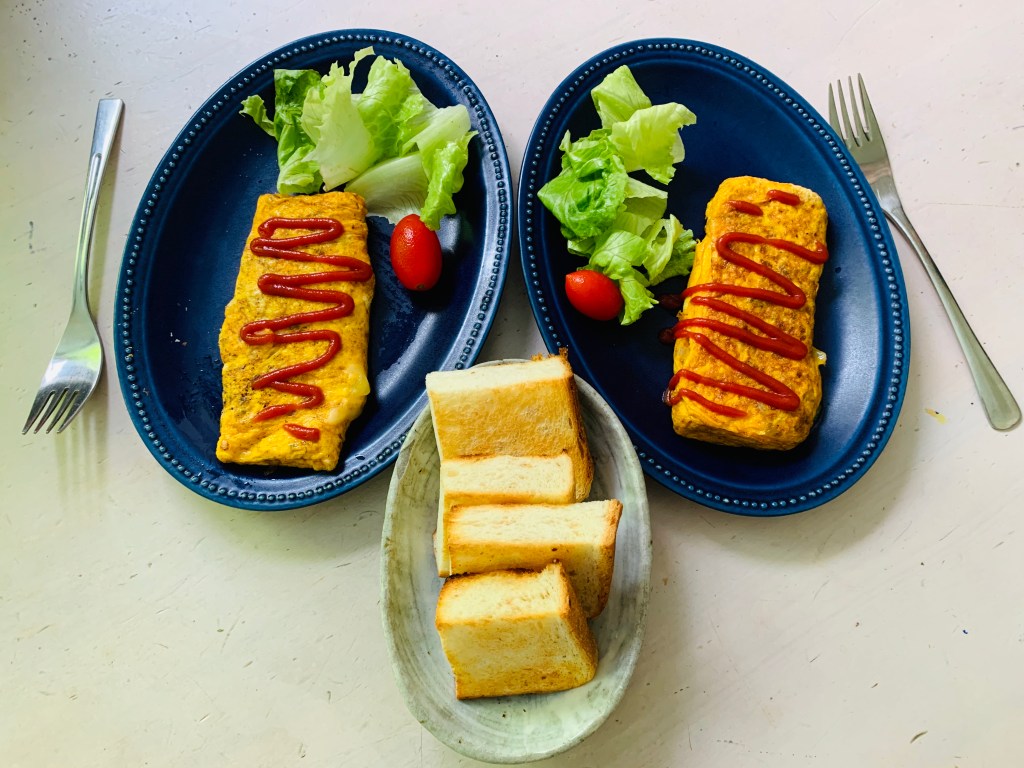 挽肉玉ねぎチーズたっぷりのオムレツ朝ごはん