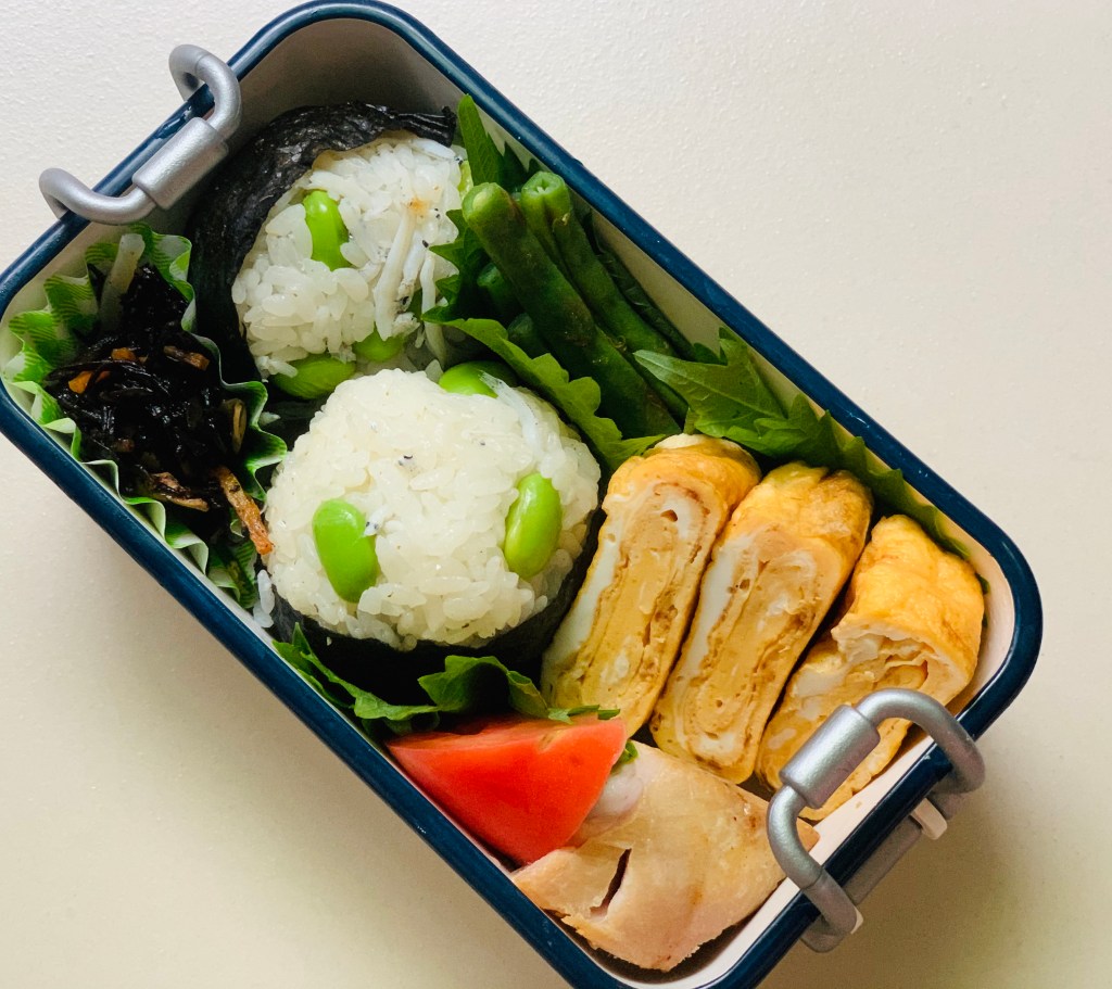 白米も今日でおしまいですが・・・しらすと枝豆🍙弁当