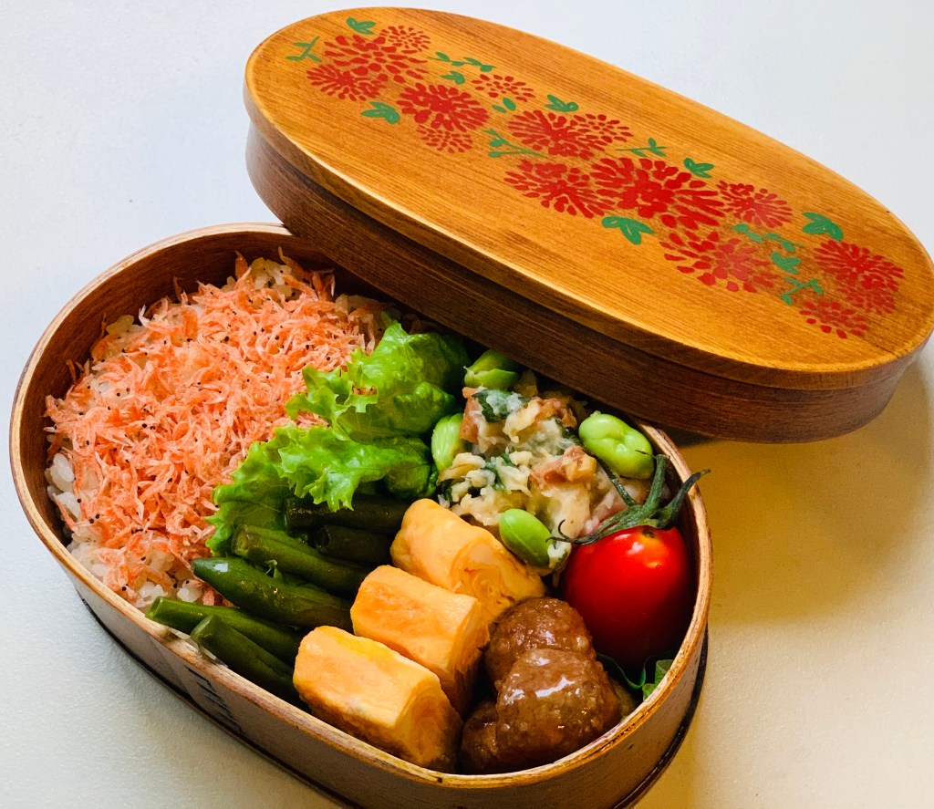 梅しそ入り里いもサラダ&赤エビのせご飯弁当