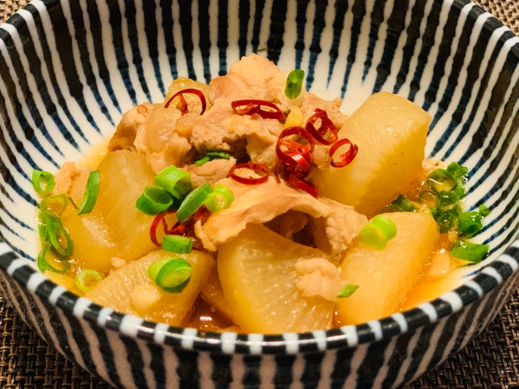 大根と豚こまのピリ辛く炊いたん⭐️ご飯にも酒のツマミにも合いますね😃
