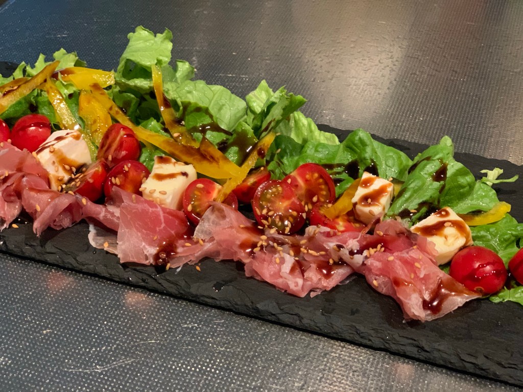 生ハムとクリームチーズにKALDIで買ったバルサミコ醤油を掛けてみたら想像通り旨❣️😋