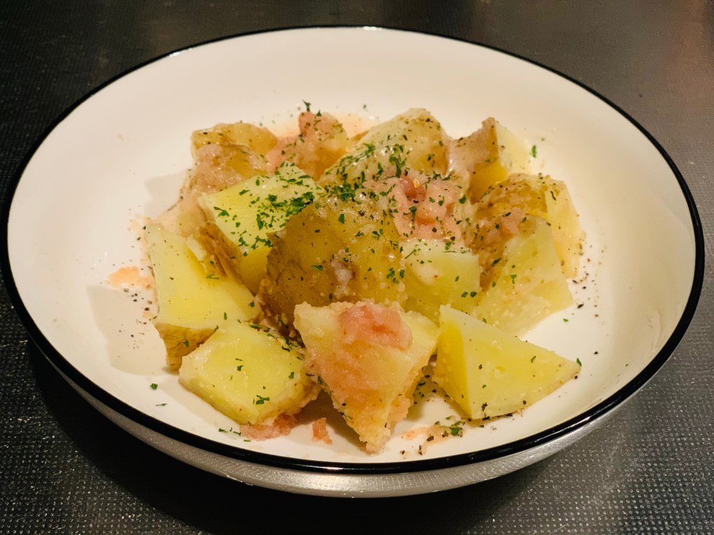息子の大好物じゃがいも🥔明太子と塩胡椒でじゃがいもの甘味をいただきます😋😋