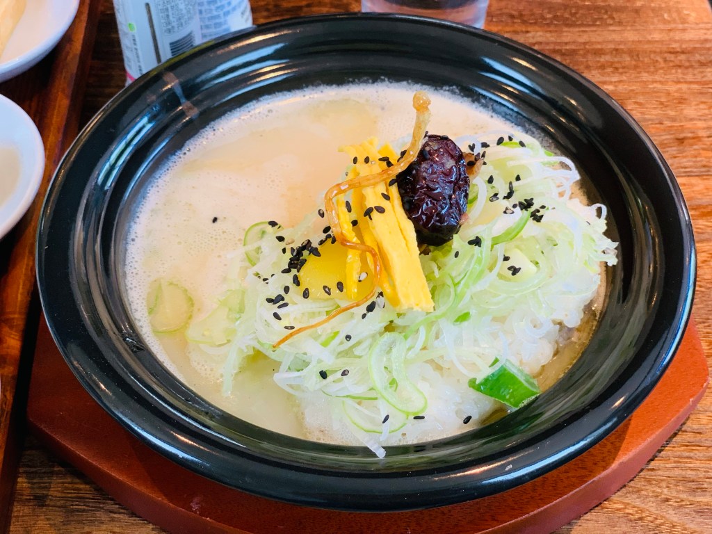 月一で行くモールの近くに出来て気になってた参鶏湯専門店🇰🇷多分初めて食べました^_^ あっさりしてて鶏肉ホロホロで美味しかった❣️